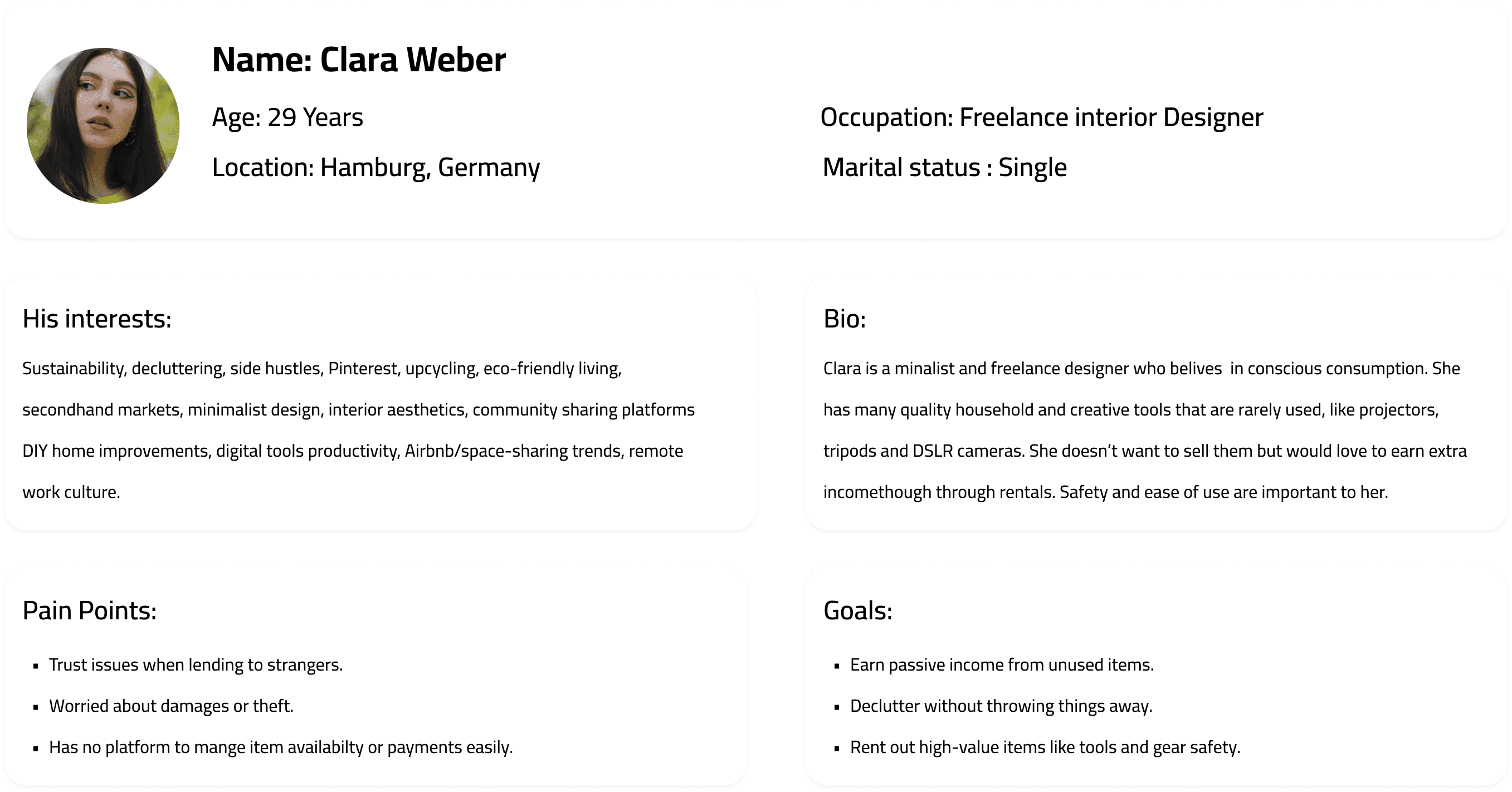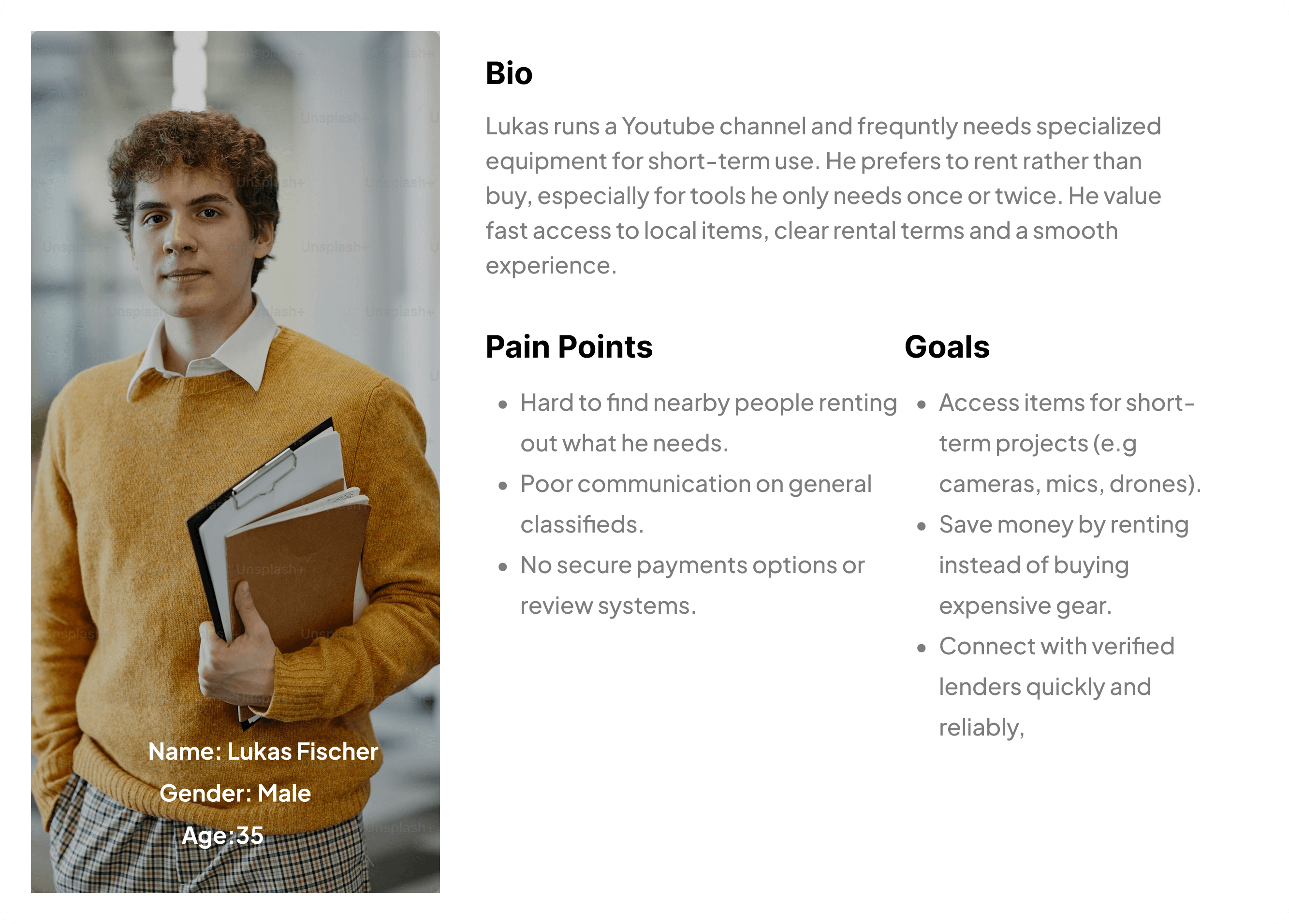 To better understand users’ attitudes and behaviors around item rentals, conducted user interviews with people who have either rented or loaned items before, formally or informally.