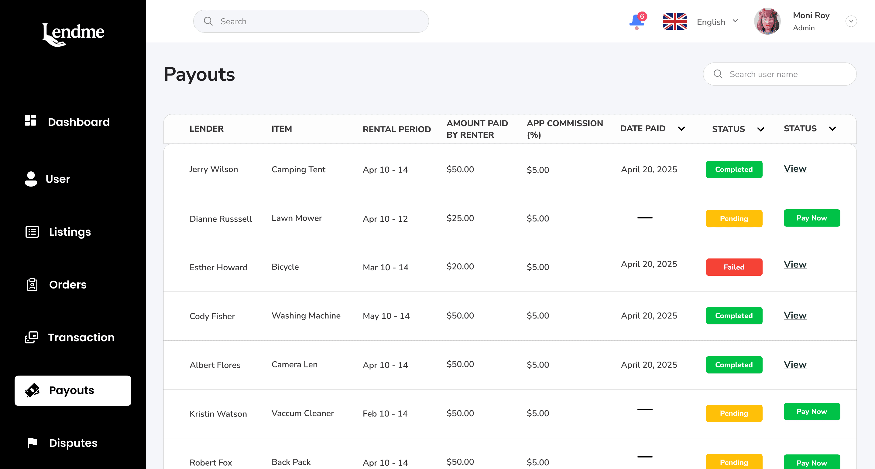 As the lendME platform grows, the admin team needs a central tool to manage users, monitor transactions, handle payouts, address disputes and ensure trust between renters and lenders. Without an efficient dashboard, oversight becomes scattered and delays decisions that affects real money and people.