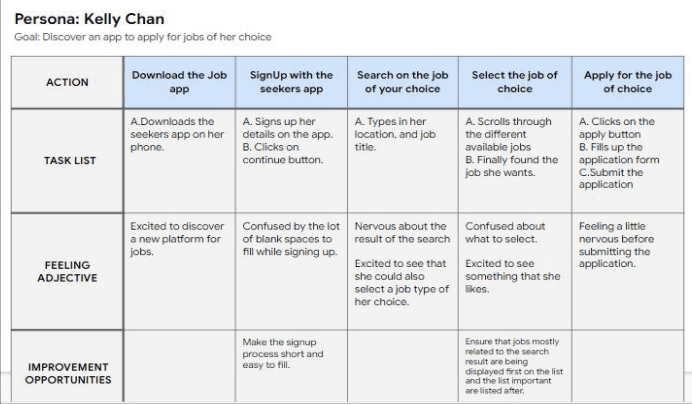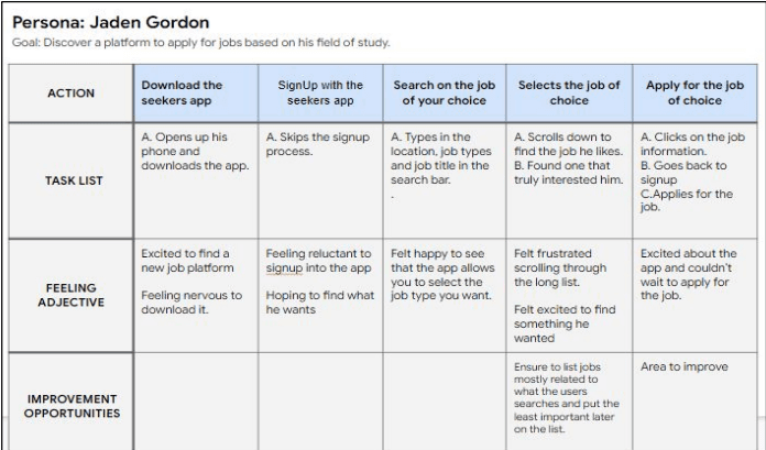 Mapping out Kelly Chan's and Jaden Gordon’s user journey map revealed how helpful it would be for users to have access to the Job application app